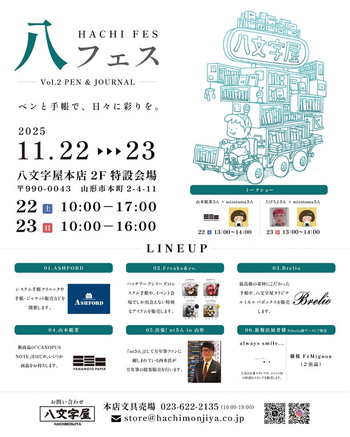 昨年に続き、今年も山形の八文字屋さんで開催される「八フェス」に参加いたします。